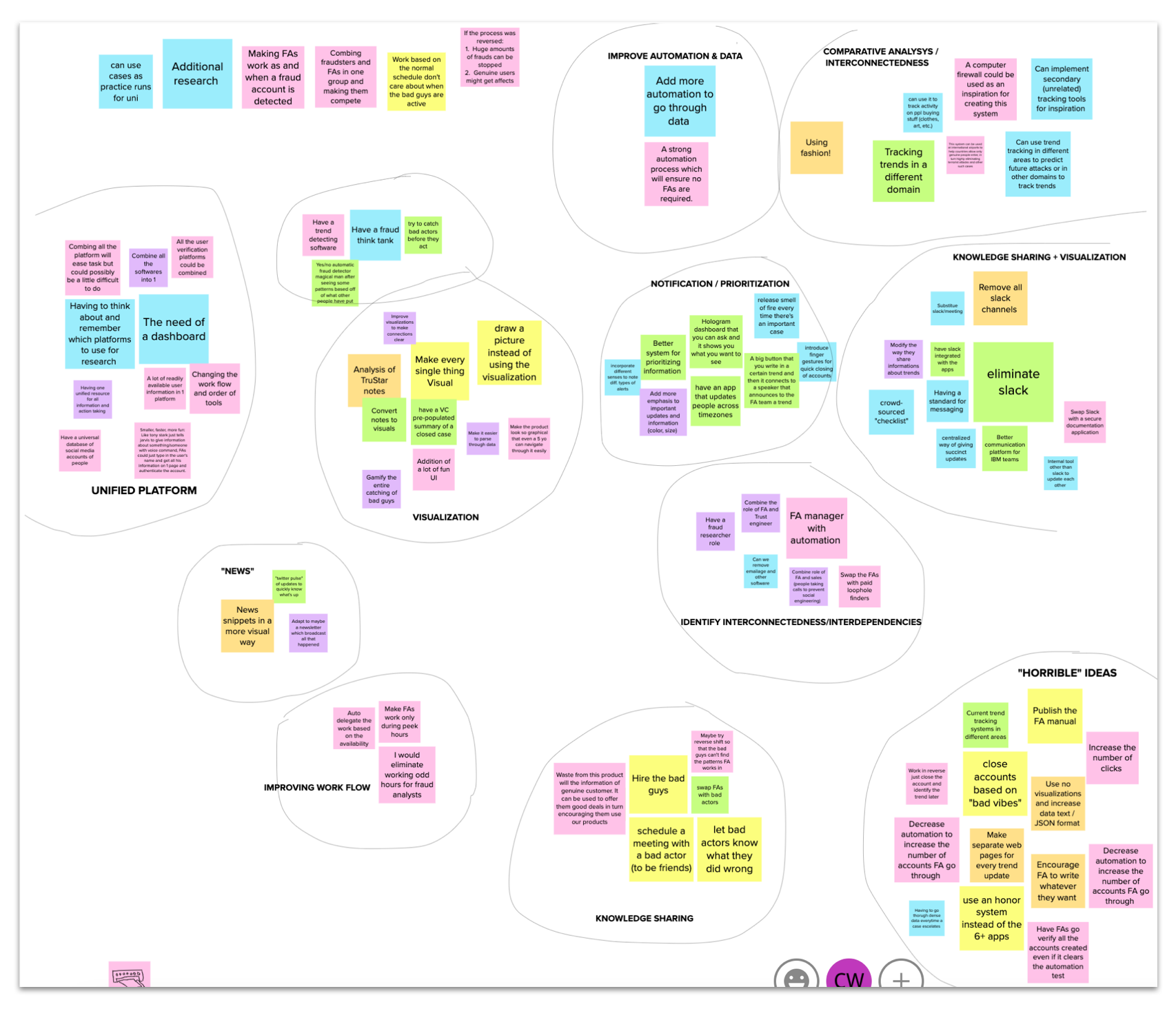 We each sketched low fidelity designs of content to show on a unified dashboard experience. We also explored how to display fraud trend data visually.