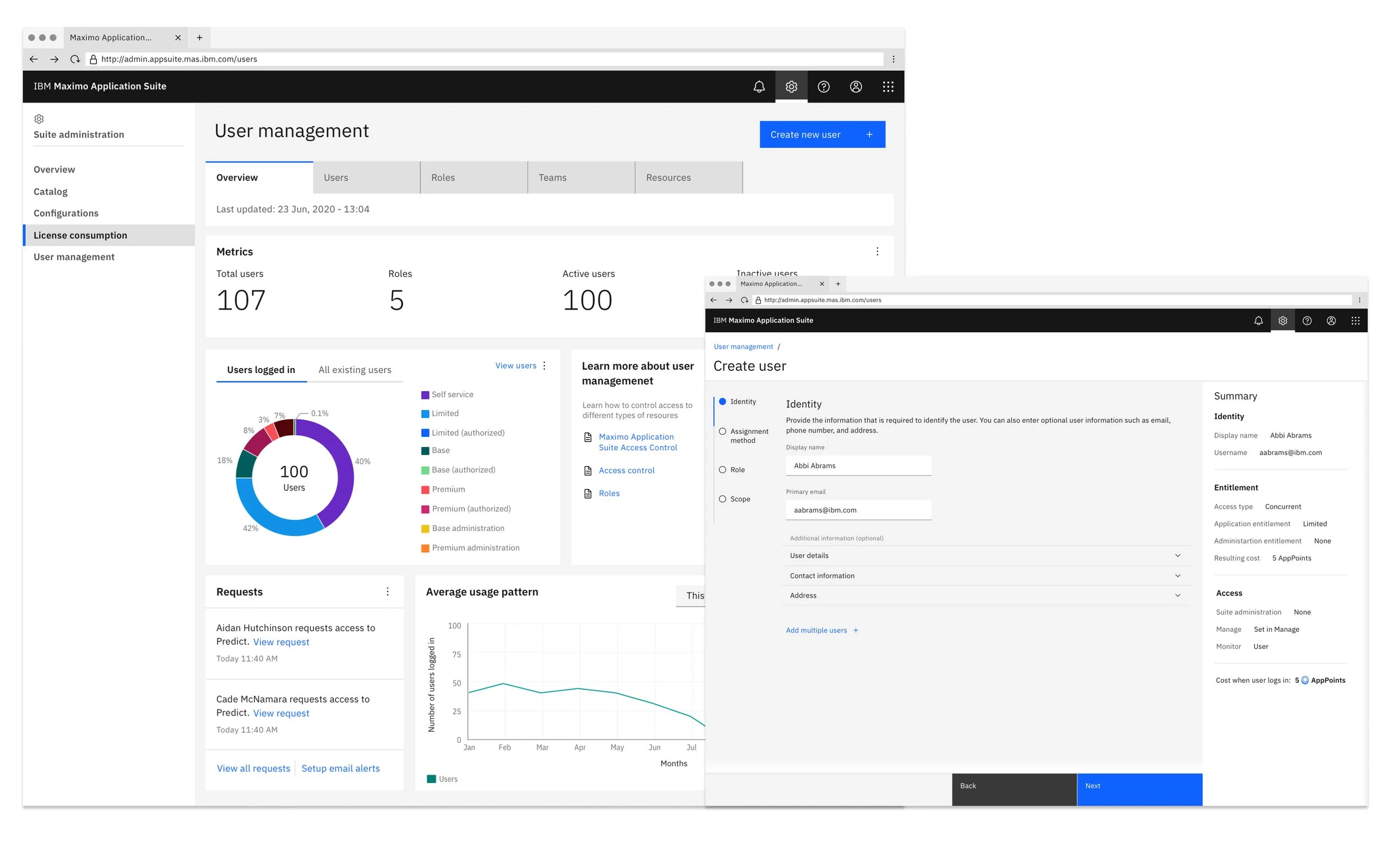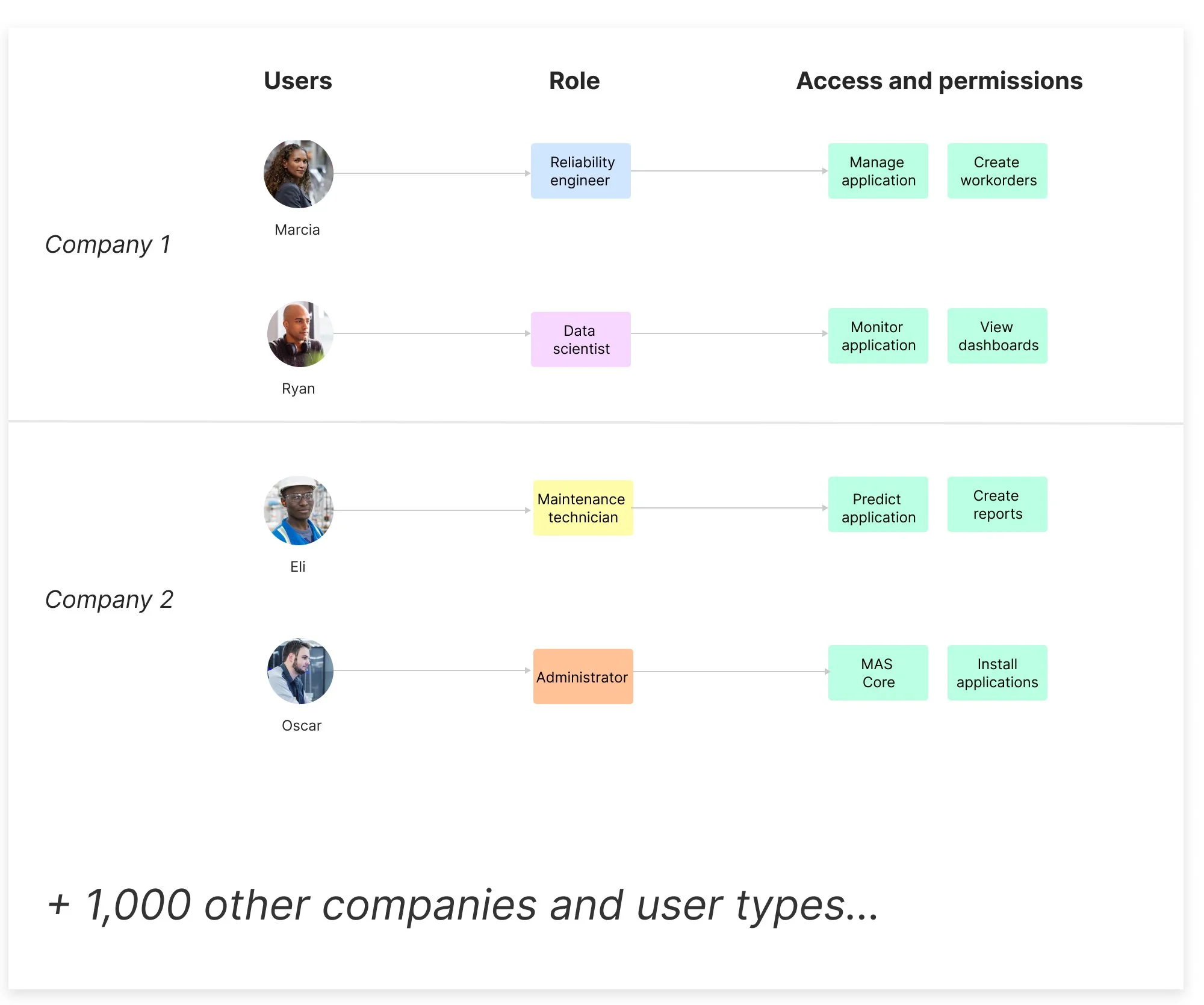 The Maximo Application Suite (MAS) helps organizations manage assets and predict maintenance issues—like Adobe Creative Cloud, but for operations instead of design. Different user roles require different access levels, e.g. a field technician vs. an IT admin. Access control defines which apps, actions, and resources each role can use. Since MAS only offered basic user creation, we designed a new access control model to give clients the flexibility and security they need.